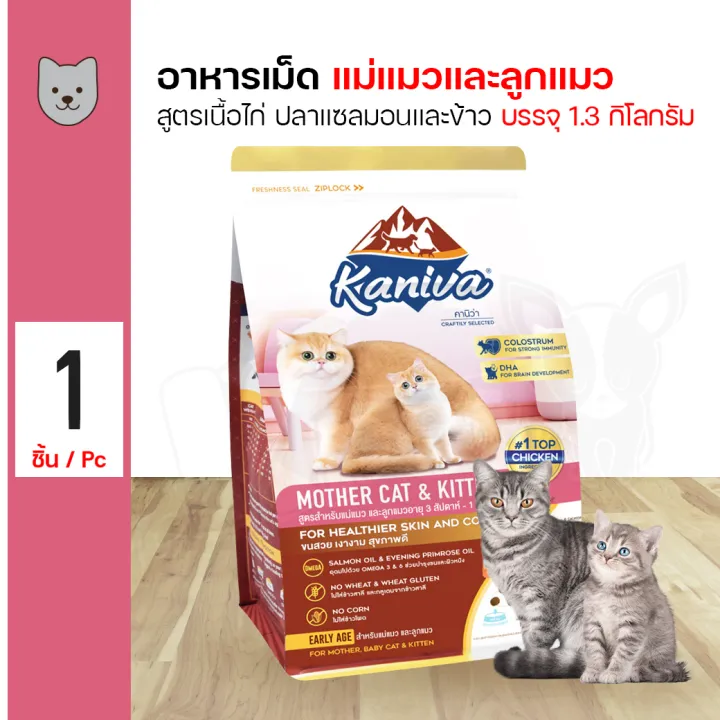 Kaniva Mother Cat & Kitten 1.3 Kg. Chicken, Salmon and Rice For Mother Cats and Kitten 3 Weeks – 1 Year (1.3 Kg./Bag)